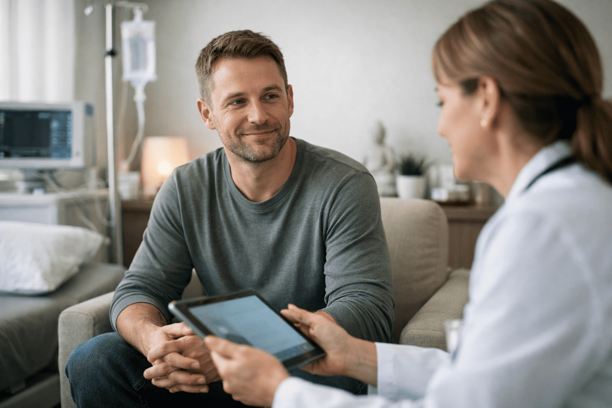 Your intake visit takes 60 to 90 minutes. Bringing required items speeds up enrollment. We start medication support on day one when appropriate.